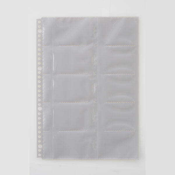 ไส้เติมแฟ้มนามบัตรขนาด A4 จำนวน 10 ช่อง สามารถใส่นามบัตรได้ 20 ใบ ผลิตจากพลาสติก PP คุณภาพดี ขนาดไส้เติม 212 × 297 มม. บรรจุ 10 ซอง / แพ็ค