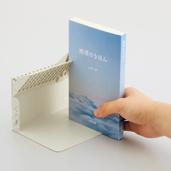 เมื่อใส่หนังสือเข้าไป ตัวกั้นของช่องนั้นจะถูกดันให้ยกขึ้น และตัวกั้นอีกสองฝั่งจะช่วยยึดหนังสือเอาไว้ ดังนั้นจึงมั่นใจได้ว่า แม้จะใส่หนังสือเยอะแค่ไหน ก็สามารถดึงออกได้ทีละเล่มโดยไม่ทำให้หนังสือเล่มอื่นๆล้ม สามารถใช้จัดระเบียบสิ่งของอื่นๆนอกจากหนังสือได้ เช่น CD หรือ DVD โดยความสูงของวัตถุต้องไม่ต่ำกว่า 12 ซม. ตัวที่กั้นมีข้อต่อทั้ง 2 ฝั่ง สามารถประกอบต่อๆกันหลายชิ้นได้ ขนาดที่กั้น 203 x 120 x 122 มม. มีให้เลือก 2 สี ขาว และดำ