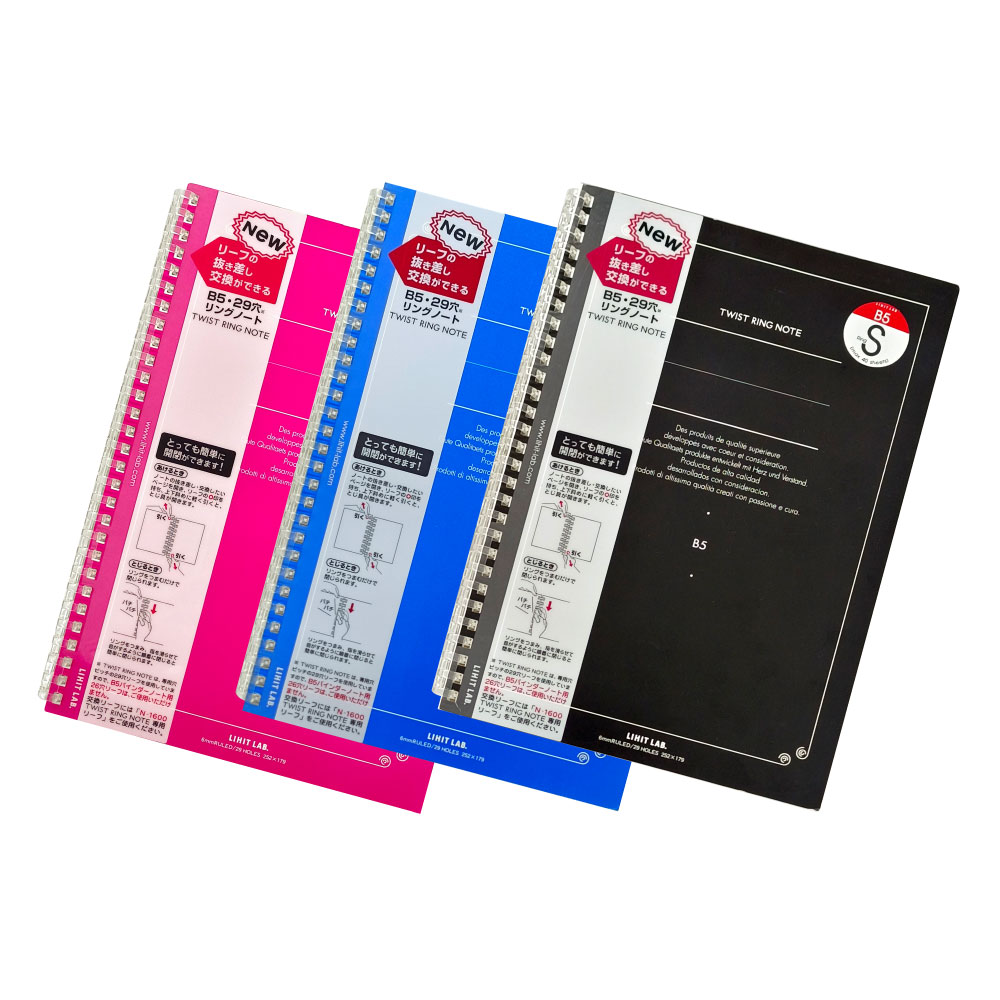 สมุดโน๊ตแบบเปลี่ยนไส้ได้ ลิขสิทธิ์เฉพาะของ LIHIT ที่ช่วยให้การเติมหรือย้ายหน้ากระดาษทำได้อย่างง่ายดาย เพียงแค่จับสมุดตรงเครื่องหมาย PULL OPEN บนกระดาษ แล้วดึงพร้อมกัน 2 ข้างเบาๆ ก็สามารถเปิดห่วงเพื่อเติมกระดาษหรือเอาหน้าที่ไม่ต้องการออกได้โดยกระดาษไม่มีรอยฉีกขาด สมุดเปิดได้ 360 องศา อีกทั้งยังสนุกกับการตกแต่งให้เป็นสมุดตามสไตล์ของคุณ เช่น Scrapbook หรือ สมุด Friendship ด้วยการตกแต่งหน้าปก จัดทำ Index เพื่อแบ่งหมวดหมู่ภายใน หรือเพิ่มปฏิทินเพื่อจดบันทึกการนัดหมายต่างๆ รุ่นนี้เป็นห่วงไซส์ S กระดาษแบบมีเส้น (Line) 30 แผ่น (สามารถจุเพิ่มได้ถึง 40 แผ่น) ขนาดสมุด 185 x 12 x 252 มม. มีปกให้เลือก 3 สี แดง น้ำเงิน และดำ